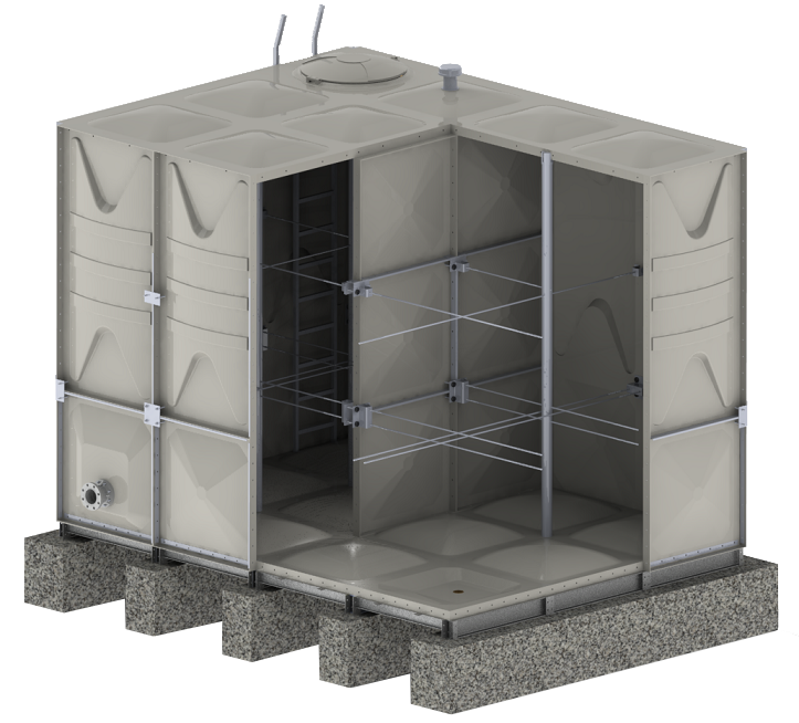 GRP Sectional Water Storage Tanks can be divided into compartments with the help of specially designed partition panels.
